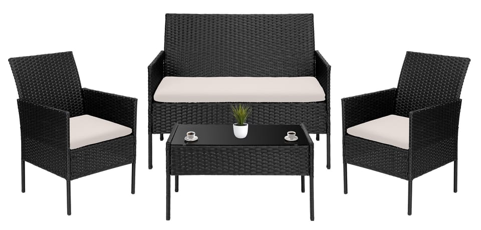 Meble ogrodowe z technorattanu zestaw 4w1 MAGNOLIA czarny bezowe poduszki