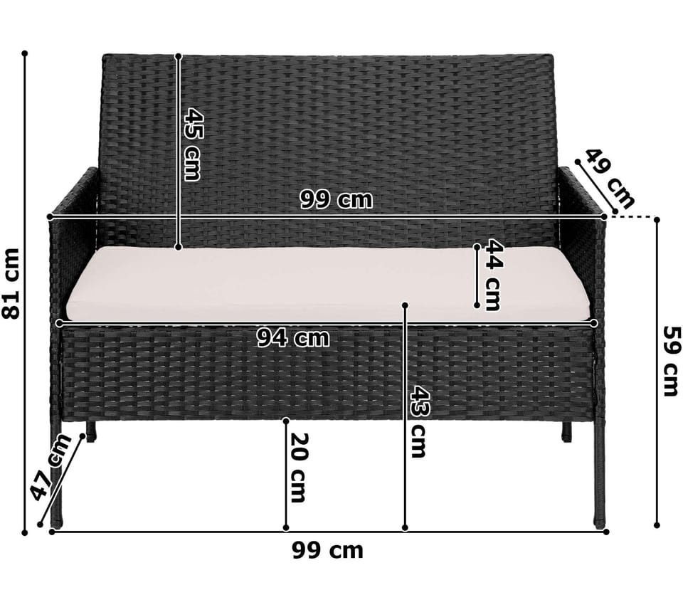 Meble ogrodowe z technorattanu zestaw 4w1 MAGNOLIA czarny beżowe poduszkiModel: MAGNOLIA | Kolor mebli: czarny | Kolor poduszek: beżowy ✅ Wytrzymała konstrukcja z technorattanu✅ Kompletny zestaw✅ Wygodne poduszki✅ Zdejmowane powłoczki✅ Stolik wyposażony w hartowane szkło✅ Elegancki design✅ Uniwersalność zastosowań Nasz zestaw ogrodowy MAGNOLIA to połączenie nowoczesnego designu z trwałymi i odpornymi na warunki atmosferyczne materiałami.Zestaw składa się z dwóch foteli, sofy i ławy, co pozwala na swobodny relaks w wygodnych warunkach. Miękkie siedziska o grubości 4 cm i praktyczne poduszki ze zdejmowanymi pokrowcami zapewniają wyjątkowy komfort użytkowania.Meble wykonane są z trwałej i stabilnej konstrukcji stalowej, pokrytej technorattanem. Dzięki temu zestaw ogrodowy MAGNOLIA będzie służył Ci przez wiele lat.Ława z pięknym blatem ze szkła hartowanego jest praktycznym dodatkiem do całego zestawu. Meble są bardzo łatwe w czyszczeniu i nie wymagają pielęgnacji, co pozwala na bezproblemowe korzystanie z nich przez cały sezon.Meble są dostępne w kolorze czarnym, natomiast siedziska są w kolorze grafitowym. Zestaw ogrodowy MAGNOLIA jest przeznaczony do samodzielnego montażu, a nóżki mebli zakończone są ochronnymi podkładkami, które chronią podłogę przed uszkodzeniami.Zamów już dziś nasz nowoczesny zestaw ogrodowy MAGNOLIA i ciesz się wygodnym i stylowym miejscem do relaksu na świeżym powietrzu! Cechy produktuMateriał konstrukcji: Stal pokryta technorattanemPoduszki: Grubość 4 cm, zdejmowane poszewkiElementy zestawu: Sofa dwuosobowa, 2 fotele, stolik ze szklanym blatem (hartowane szkło)Montaż: Meble do samodzielnego montażuKolor: Czarny technorattan, beżowe poduszki ☑️ Wymiary✅ Sofa podwójna:Szerokość: 99 cmWysokość: 81 cmGłębokość: 58 cmMaksymalne obciążenie: 280 kg✅ Poduszka duża:Szerokość: 94 cmWysokość: 44 cmGłębokość: 4 cm✅ Fotel:Szerokość: 50 cmWysokość: 81 cmGłębokość: 58 cmMaksymalne obciążenie: 120 kg✅ Poduszka mała (2szt.):Szerokość: 46 cmWysokość: 44 cmGłębokość: 4 cm✅ Stolik kawowy:Szerokość: 71 cmWysokość: 39 cmGłębokość: 41 cmMaksymalne obciążenie: 25 kg✅ Grubość szkła hartowanego: 0,5 cm Informacje dodatkowePrzedstawione kolory należy traktować poglądowo - mogą odbiegać od rzeczywistych ze względu na różne ustawienia monitorów oraz proces obróbki zdjęć. Rzeczywiste wymiary mogą się różnić od podanych wyżej. Tolerancja błędów może wynosić +/- 5%. Marka:GockowiakKod produktu:066333MGKod EAN:5905523066333Kolor mebli:czarnyMateriał:technorattanMateriał konstrukcji:stalPrzeznaczenie:ogród | taras | balkonDo samodzielnego montażu:tak