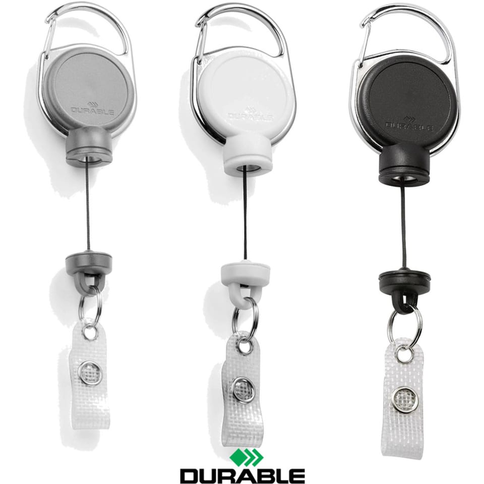* mechanizm ściągający DURABLE EXTRA STRONG * bardzo silny mechanizm ściągający jojo do ciężkich etui na karty lub kluczy * mechanizm ściągający pozostaje zwinięty przy obciążeniu do maksymalnie 300 g * metalowy klips na odwrocie * małe kółeczko na klucze i pętelka na zatrzask * wzmocniona taśma o długości 60 cm * kolory: czarny, biały, szary * jednostka sprzedaży 1 sztuka * DURABLE Hunke & Jochheim GmbH & Co. KG tworzy i rozwija inteligentne rozwiązania oraz produkty mające zastosowanie w nowoczesnych miejscach pracy – sprzęt biurowy, systemy informacyjne, organizacja i archiwizacja, systemy oznakowania przestrzennego, akcesoria na biurko itp. - dzięki ciągłemu, innowacyjnemu podejściu oraz bogactwie doświadczeń, firma od ponad 100 lat z sukcesem rozwija swoją działalność, a jej produkty charakteryzują się jakością, wzornictwem i funkcjonalnością