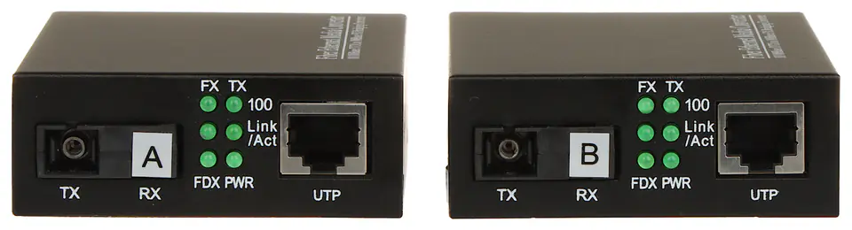 Konwerter OM1-SM pozwala na zmianę medium przewodzącego strumień danych ze standardowej skrętki STP/UTP na kabel światłowodowy jednomodowy