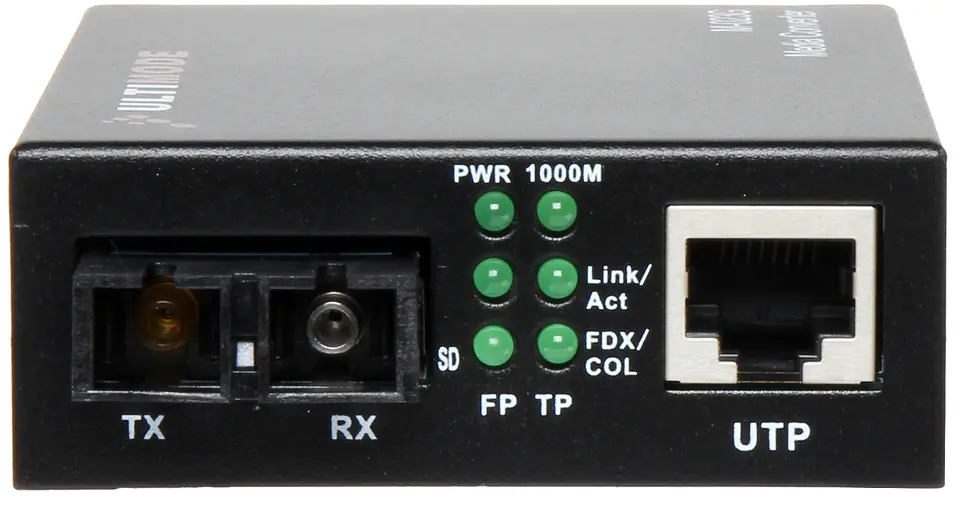 Media konwerter posiada dwa złącza SC. Jedno służy do nadawania (TX) a drugie do odbierania sygnału (RX)Sygnał optyczny jest transmitowany i odbierany w II oknie transmisyjnym 1310 nm