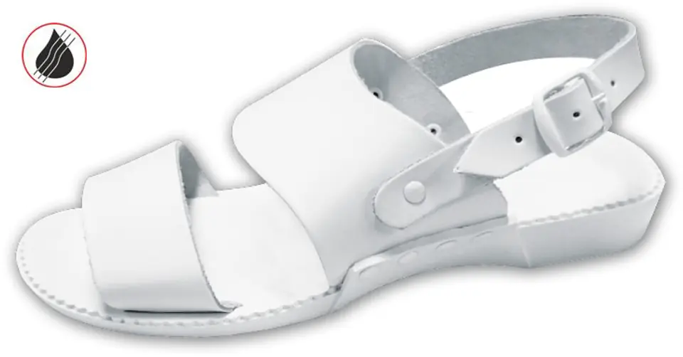 Obuwie zawodowe damskie. Cholewka: skóra naturalna. Wyściółka: zmywalna, pomaga utrzymać obuwie w czystości. Spód: Tworzywo PCV. Kolor: biały