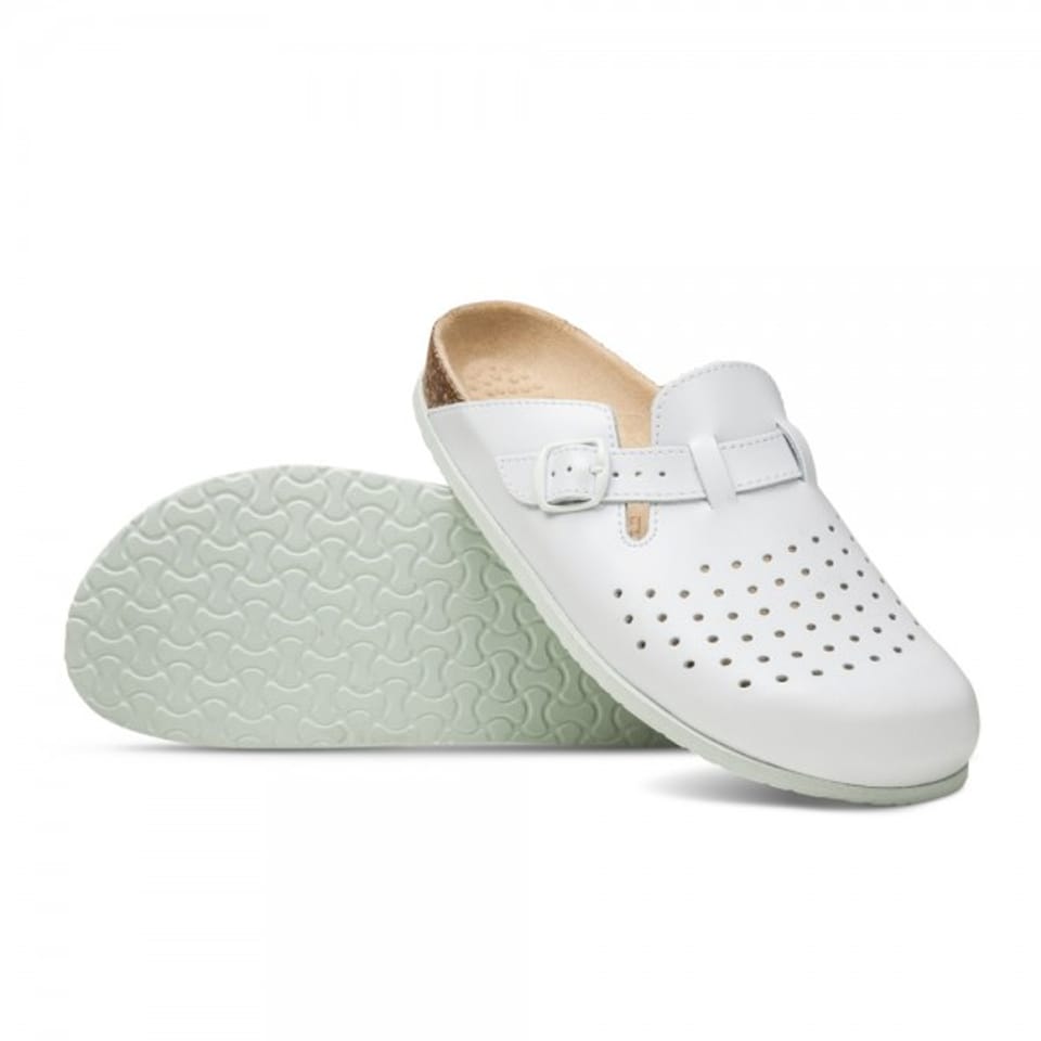 Buty medyczne na spodach antypoślizgowych. Są wykonane z naturalnej skóry wykończonej powłokami, które umożliwiają ich dezynfekcję oraz łatwe utrzymanie w czystości. Do ich czyszczenia można używać ogólnie dostępnych środków dezynfekcyjno – myjących.