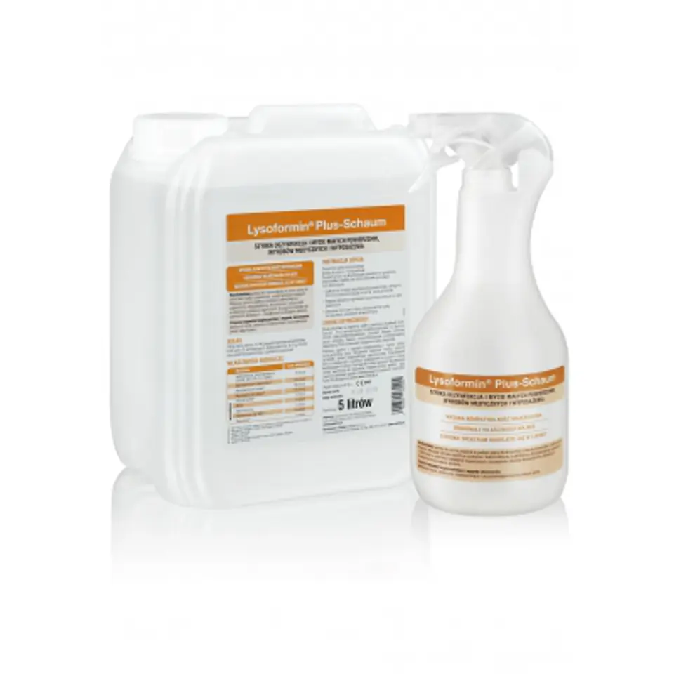 Bezalkoholowy preparat w postaci piany do szybkiej dezynfekcji i mycia delikatnych powierzchni, wyposażenia i innych wyrobów medycznych zanieczyszczonych organicznie. Zalecany do powierzchni delikatnych - nieodpornych na działanie alkoholu. preparat gotowy do użycia wykazuje szerokie spektrum działania obejmujące bakterie, prątki, grzyby, wirusy, w tym wirusy krwiopochodne, m.in.: HCV, HBV i HIV skuteczny w obecności substancji organicznych już w 5 minut nie zawiera alkoholu, aldehydów, fenolu i chloru wysoka kompatybilność materiałowa – szczególnie zalecany do dezynfekcji i mycia powierzchni wrażliwych na działanie alkoholu np. fotele, łóżka zabiegowe, kable, pasy i łóżka do masażu, inkubatory, wanny akrylowe, blaty robocze itd.* możliwość stosowania do powierzchni kontaktujących się z żywnością postać pianki eliminuje ryzyko wdychania aerozolu powstającego podczas rozpylania środka po użyciu preparat nie pozostawia smug i osadów, a wydezynfekowana powierzchnia nie klei się i nie wymaga spłukiwania * W przypadku dezynfekcji zabawek - po przeprowadzonej procedurze, zabawki należy zmyć dokładanie wodą zdatną do picia. Opakowania: 1 l z końcówką spieniająco-spryskującą, 5L