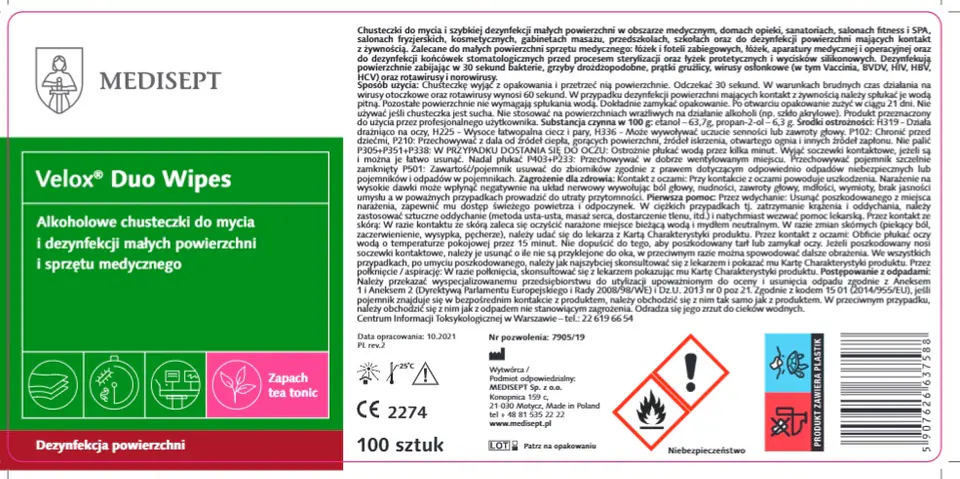 MEDISEPT VELOX DUO WIPES POJEMNIK Chusteczki do dezynfekcji powierzchni, alkoholowe