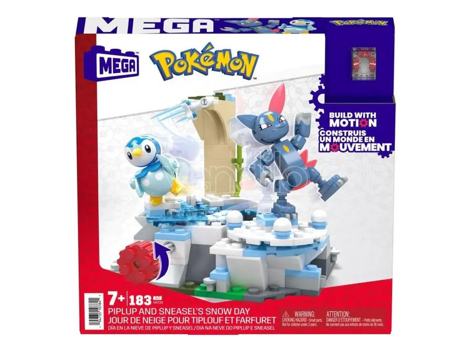Zobacz, jak Piplup i Sneasel bawią się zimą z tym zestawem konstrukcyjnym zawierającym innowacyjny ruchomy klocek! Zbuduj zaśnieżone otoczenie, a następnie przekręć korbkę, aby zobaczyć, jak Piplup i Sneasel jeżdżą na łyżwach po tej zimowej krainie czarów. Połącz z innymi zestawami Adventure Builder, aby stworzyć rozszerzony świat Pokemonów z ruchem. Każdy sprzedawany oddzielnie.