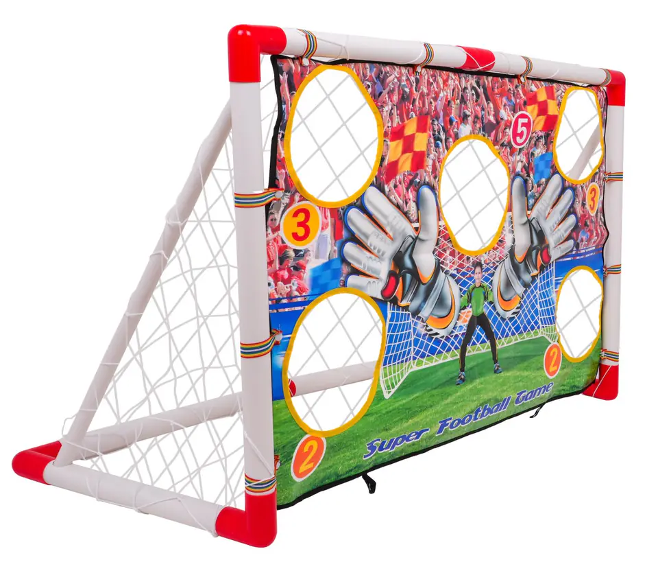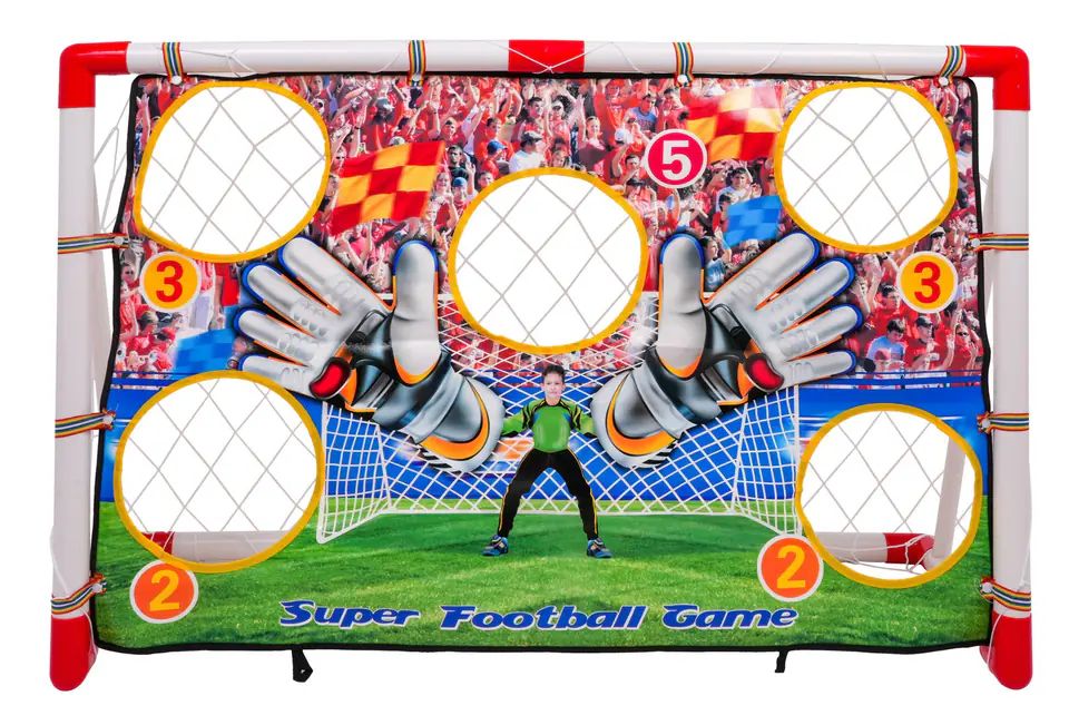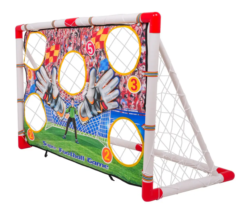 Bramka z matą do ćwiczeń celności to propozycja dla dzieci od 3-go roku życia. Na macie znajdują się otwory oznaczone punktami, po trafieniu w dany otwór zawodnik otrzymuje przypisaną mu ilość punktów. Matę do nauki celności można w każdym momencie szybko zdjąć.