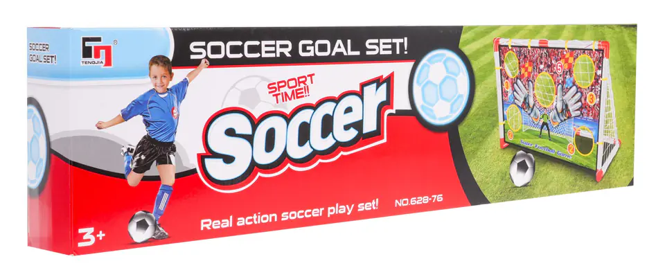- bramka 116 cm x 76 cm x 48 cm, - piłeczka o średnicy ok. 15 cm, - pompka ok. 20 cm x 6 cm x 4 cm, - haki do mocowania w podłożu ok. 14 cm x 5,5 cm x 2 cm, - opakowanie ok. 79 cm x 21,3 cm x 9,3 cm.