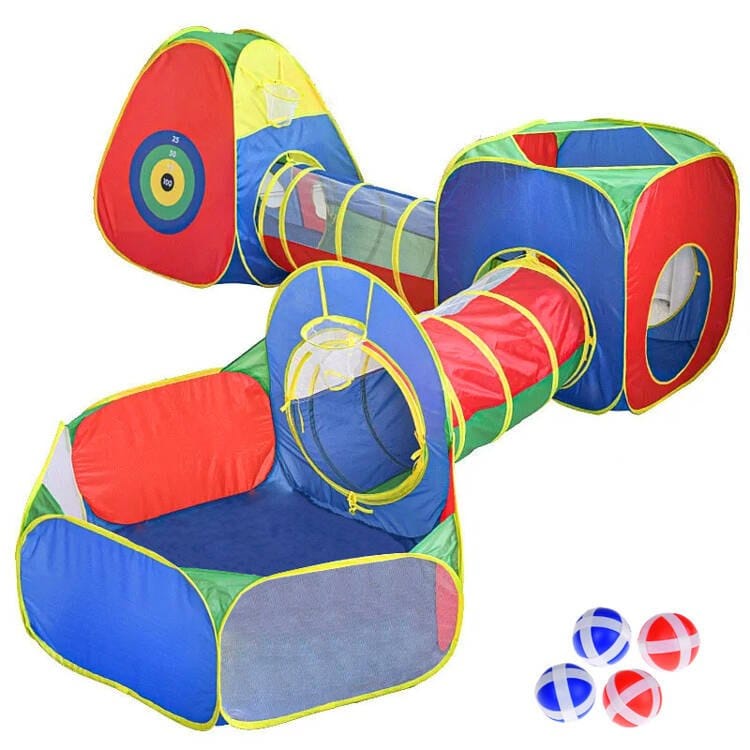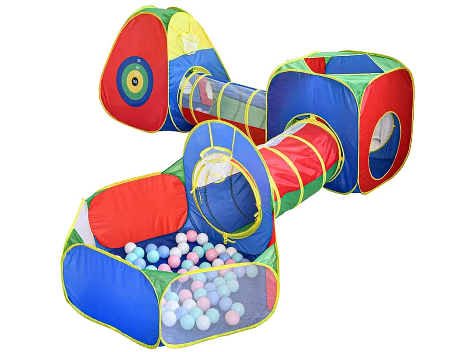 Namiot trójkątny: Posiada tarczę do strzelania piłeczkami z rzepami oraz specjalne otwory, dopasowane do kolorów piłeczek. Namiot kwadratowy: Z dwoma wejściami i możliwością łączenia namiotów za pomocą tuneli. Namiot basen/kojec na piłeczki Z pojemnikiem na duże ilości piłeczek i koszem do rzucania piłeczek (brak piłek w zestawie!).