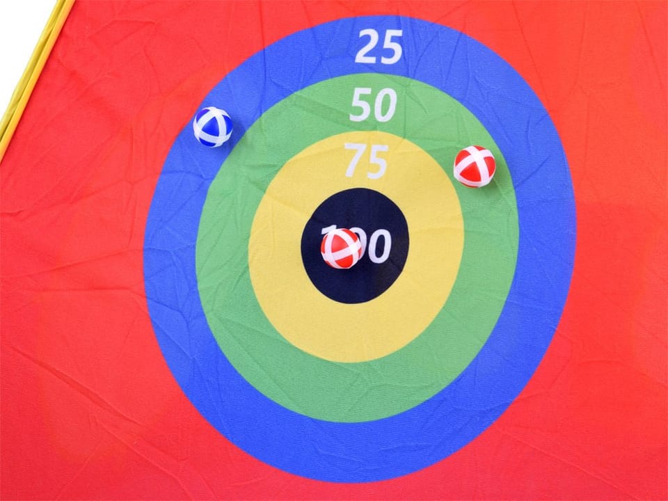 Namiot trójkątny: Posiada tarczę do strzelania piłeczkami z rzepami oraz specjalne otwory, dopasowane do kolorów piłeczek.Namiot kwadratowy: Z dwoma wejściami i możliwością łączenia namiotów za pomocą tuneli.Namiot basen/kojec na piłeczki Z pojemnikiem na duże ilości piłeczek i koszem do rzucania piłeczek (brak piłek w zestawie!).