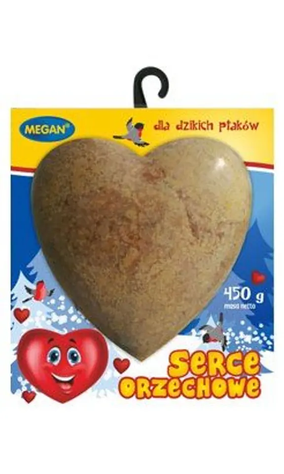 Serce orzechowe to doskonały sposób na dokarmianie ptaków zimą.Produkt jest połączeniem orzechów z tłuszczem, które są przysmakiem ptaków dziko żyjących.Wysokoenergetyczna zawartość pomaga im przetrwać nawet bardzo mroźną zimę.