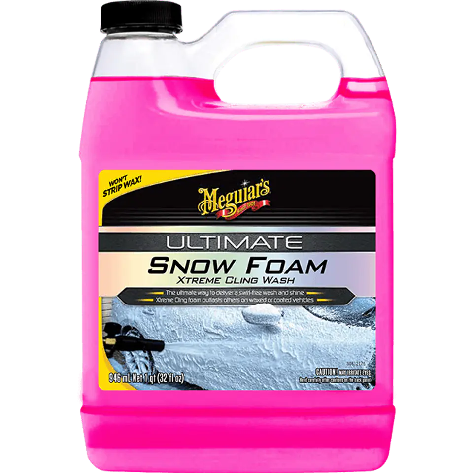 Piana aktywna Meguiar’s Ultimate Snow Foam, zaprojektowana specjalnie do wszystkich rodzajów zabezpieczeń lakieru, czyści nie usuwając powłoki ochronnej lub wosku. Gęsta piana „przywiera” do powierzchni, delikatnie penetrując zabrudzenia drogowe, umożliwiając bezdotykowe spłukanie samochodu myjką ciśnieniową. Może również przygotować bardziej zabrudzony pojazd do mycia rękawicą lub gąbką (pre-wash).