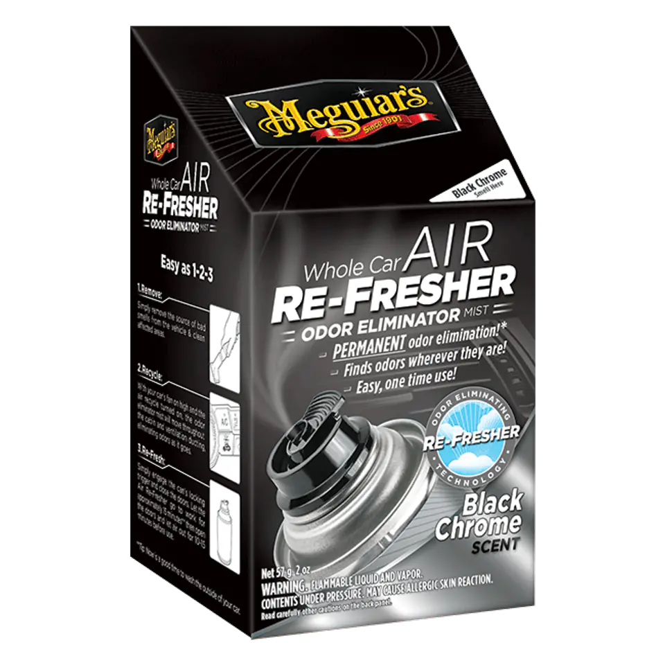 Eliminator zapachów Air Re-Fresher usuwa najbardziej uporczywe nieprzyjemne zapachy z całego wnętrza Twojego auta, ciężarówki lub SUV-a. Dzięki użyciu systemu wentylacji lub klimatyzacji auta Meguiar’s® Air Re-Fresher usunie nieprzyjemne zapachy z wszystkich trudno dostępnych obszarów wnętrza Twojego auta (również układu klimatyzacji) pozostawiając w zamian przyjemny świeży zapach.