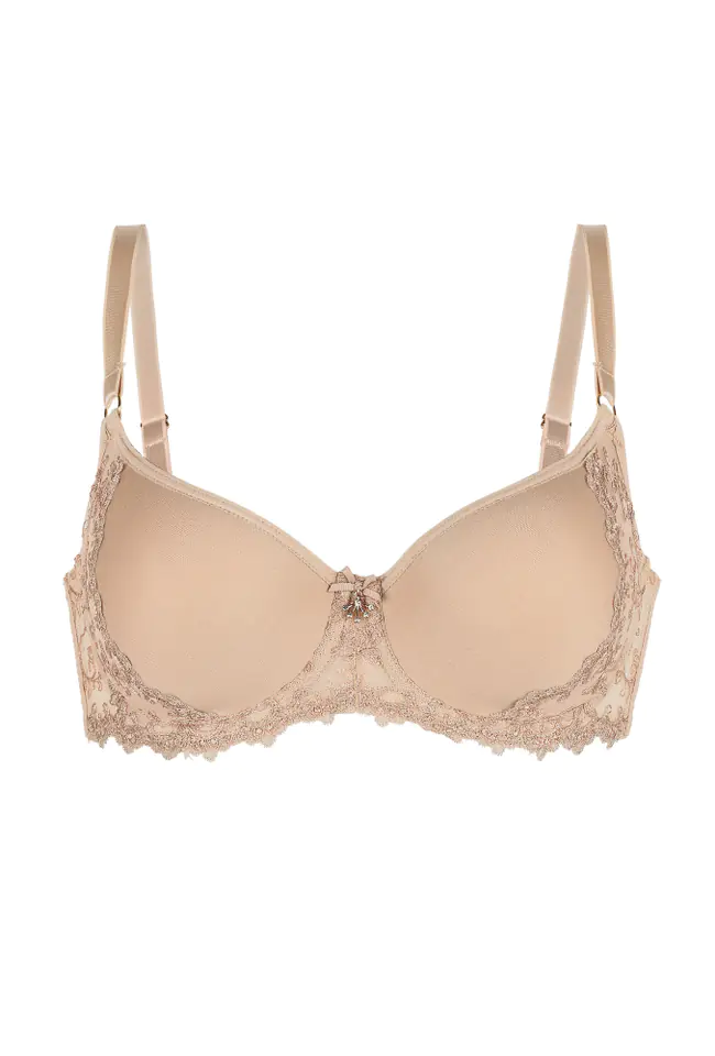 Całości dopełnia piękny włoski haft Ricamificio Di Fagnano, złote elementy oraz umieszczona między miseczkami połyskująca ozdoba. Bezszwowe, termicznie modelowane miseczki wykonane z zapamiętującej kształt pianki od niemieckiego producenta – Muehlmeiera.