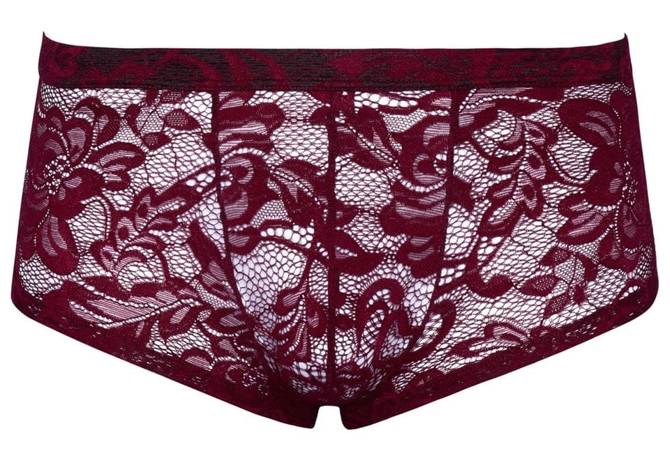 Przezroczyste spodnie o koronkowym wyglądzie!Podkreślające figurę spodnie od Svenjoyment wykonane z ciemnoczerwonej kwiatowej koronki z krytym elastycznym pasem. Miękkie i elastyczne dla maksymalnego komfortu.90% poliamid, 10% elastan.