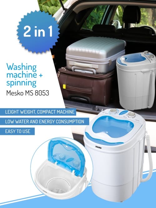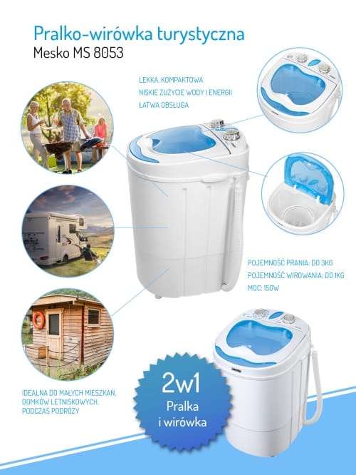 Pralko-wirówka turystyczna CAMRY MS 8053 to idealne rozwiązanie dla ciebie, jeśli uwielbiasz spędzać czas z rodziną na działce, a także, jeśli wakacje spędzasz w domku letniskowym lub na kempingu. Nawet podczas wakacji warto dbać o porządek i czystość wokół siebie. Najczęściej to konieczność prania spędza nam wtedy sen z powiek. Czas, który potrzebny byłby na pranie ręczne ubrań całej rodziny można spożytkować o wiele lepiej! Dlatego, jeśli szukasz nowoczesnego rozwiązania jak poradzić sobie z praniem ubrań poza domem, nie musisz już dalej szukać! To urządzenie sprawdzi się w każdych warunkach!