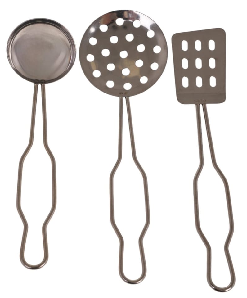 | Wymiary | - niebieski garnek ok. 10 cm x 13 cm, - różowy garnek ok. 13 cm x 4,5 cm - zielona patelnia ok. 17 cm x 2,5 cm,- pokrywka ok. 10 cm x 1,5 cm,- łopatka ok. 15 cm długości,- łyżka cedzakowa ok. 15 cm długości,- chochelka ok. 12 cm długości,- podstawka kuchenna ok. 16 cm x 13 cm,- opakowanie ok. 31 cm x 11 cm x 21,5 cm. |