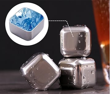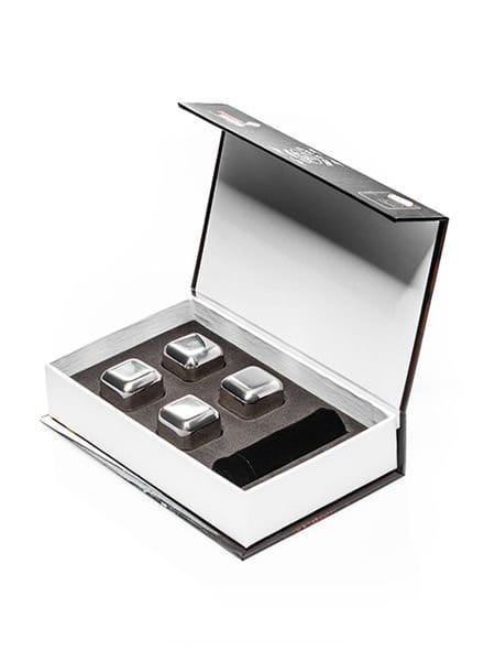- 4 metalowe kostki do drinków