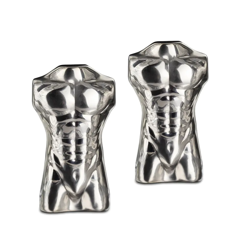 Kostki fajniejsze, drinki chłodniejsze Nie od dziś wiadomo, że schłodzone drinki smakują najlepiej. Podobnie jest z whisky. Jednak schładzanie ich kostkami lodu jest kiepskim pomysłem, gdyż lód rozcieńcza napoje i osłabia ich smak.Metalowe kostki do drinków użyte zamiast lodu, sprawdzą się o niebo lepiej, bo nie rozwadniają napoju, a jego smak, do ostatniej kropli, jest taki jak powinien być.Walory użytkowe są ważne, ale równie ważna jest prezencja, dlatego chłodzące kostki Froster mają kształt umięśnionego mężczyzny, który z pewnością trafi w damskie gusta. Seksowny facet w twojej szklance Tradycyjna kostka lodu już w czasach naszych dziadków była, no właśnie, tradycyjna. Dlatego warto zastąpić ją czymś co cieszy oko i przykuwa uwagę – np. atrakcyjnym mężczyzną. I choć trudno w to uwierzyć, jego oziębłość jest tu zaletą.Dzięki stalowej „kostce” w kształcie mężczyzny twój drink pozostanie przyjemnie chłodny, abyś mogła dłużej delektować się jego smakiem.Możesz również sączyć drinki w towarzystwie przyjaciółki lub siostry, gdyż w pudełku są dwaj faceci, którzy chętnie dotrzymają Wam towarzystwa.Pamiętaj aby przed użyciem zmrozić kostki w zamrażarce. Metalowe kostki do drinków jako prezent Miłośniczki whisky lub kolorowych drinków nie trzeba przekonywać, że chłodne znaczy lepsze. Dlatego Metalowe Kostki do Drinków – Mężczyzna to świetny pomysł na prezent dla niej.Nawet jeśli w domu są już klasyczne kamienie do whisky, to chłodzące kostki o takim kształcie będą ciekawym urozmaiceniem.Świetny prezent dla kobiety, zwłaszcza na 18-tkę, wieczór panieński oraz na Dzień Kobiet.