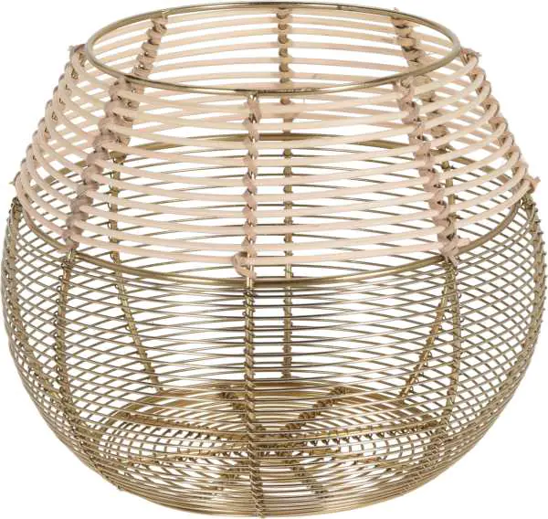 Dekoracyjny świecznik, lampion na świece w kolorze złotym. Wykonany z plecionego metalu, wytrzymałego na warunki atmosferyczne. Świecznik idealnie sprawdzi się w salonie, sypialni, czy na tarasie. Nadaje niepowtarzalny klimat oraz aurę w pomieszczeniu, w którym się znajduje. Chciałbyś poczuć tę aurę? Ten świecznik jest właśnie dla Ciebie.