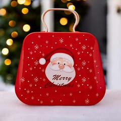 Metalowy pojemnik z uchwytem na cukierki czerwony z Mikołajem 7cmx5,5cm KSN163