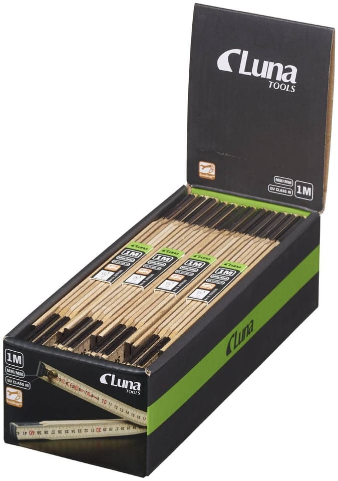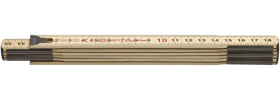 Klasyczny przymiar składany. Wykonany z cienkich, giętkich elementów z jasnego drewna brzozowego posiadającego certyfikat FSC. Bardzo wyraźny nadruk z podziałką w kolorze czarnym i czerwonym (liczby podzielne przez 10) ułatwia odczyt pomiaru. Precyzyjnie wykonane metalowe elementy zapewniają sprawne działanie i prawidłowe użytkowanie. Metalowy otwór umożliwia zamontowanie zabezpieczenia chroniącego narzędzie przed upadkiem.