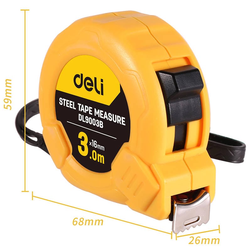 Praktyczna miara zwijana marki Deli o długości 3 m to uniwersalny przyrząd do użytku domowego oraz profesjonalnego. Korzystając z niego, z łatwością dokonasz dokładnego pomiaru ścian czy podłóg. Samodzielną pracę ułatwi Ci wygodny w użyciu przycisk oraz automatyczna blokada. Podobna miarka przyda się na każdym placu budowy i przy okazji większości remontów. Sprawdzi się zarówno przy większych realizacjach, jak i na przykład podczas odświeżania niewielkiego pokoju.