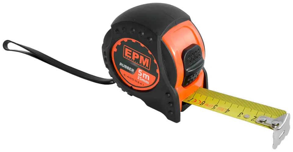 Dodatkowa gumowa powłoka antypoślizgowa na obudowie zabezpiecza przed wyśliźnięciem się miary oraz chroni ją przez wstrząsami podczas upadku.
