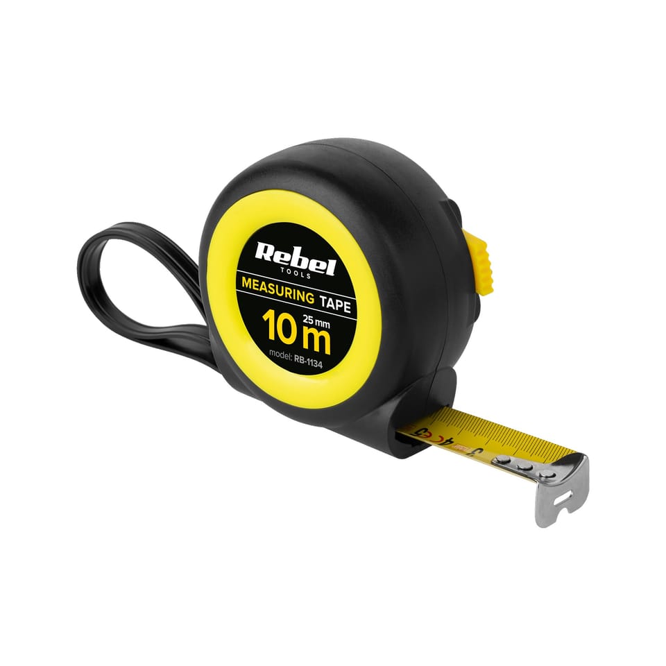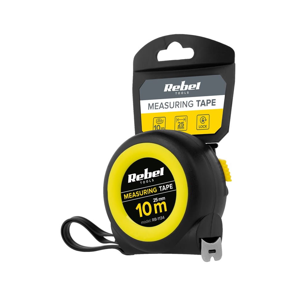 Taśma miernicza Rebel o zasięgu 10 m wykonana została ze stali , co w połączeniu z solidną obudową z tworzywa sztucznego gwarantuje dużą żywotność i odporność na uderzenia i inne uszkodzenia . Zaczep mierniczy oraz przycisk blokady , w połączeniu z dużą szerokością przyrządu (25 mm) , ułatwiają dokładny pomiar dużych odległości bez podparcia , dzięki czemu samodzielnie poradzisz sobie z pomiarem niemal w każdej sytuacji.