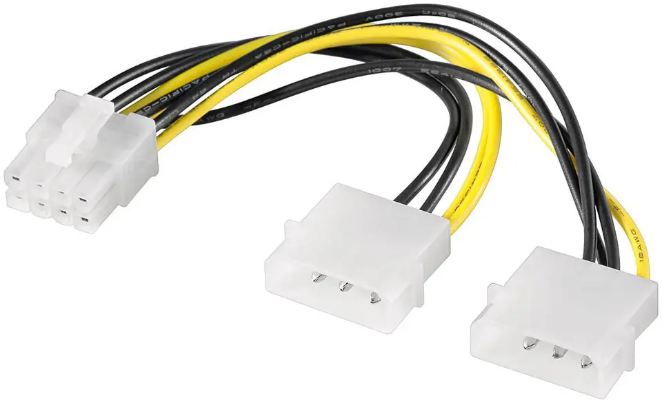 | Opis: | MicroConnect Internal PC Power supply cable 0.15 meter 2x HDD/5.25" male (4-pin) - PCIe female (8 pin) |