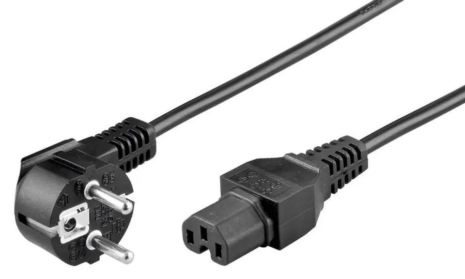 | Opis: | MicroConnect Power Cord CEE 7/7 - C15 2m Angled Schuko, Black, H05VV-F3x0.75mm2 CU, Male-Female |