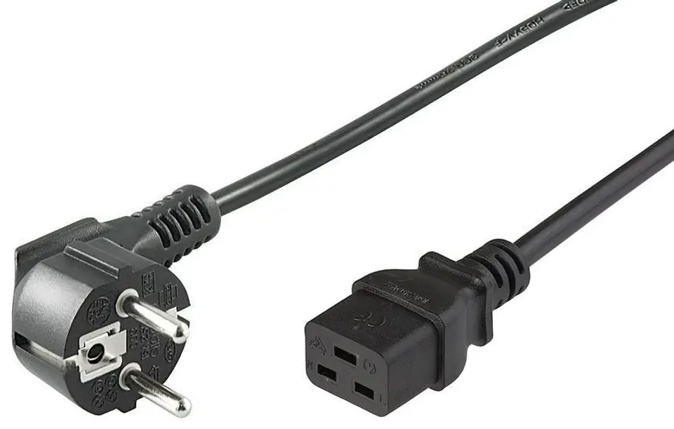 | Opis: | MicroConnect Power Cord CEE 7/7 - C19 0.5m Angled Schuko - C19 H05VV-F3x1mm2 CU, Male-Female |