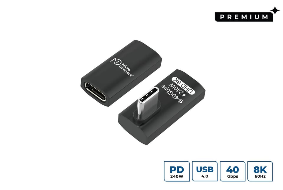 MicroConnect Premium USB4 Gen 3x2 USB-C angeled straight adapter, 40Gbps, 240W