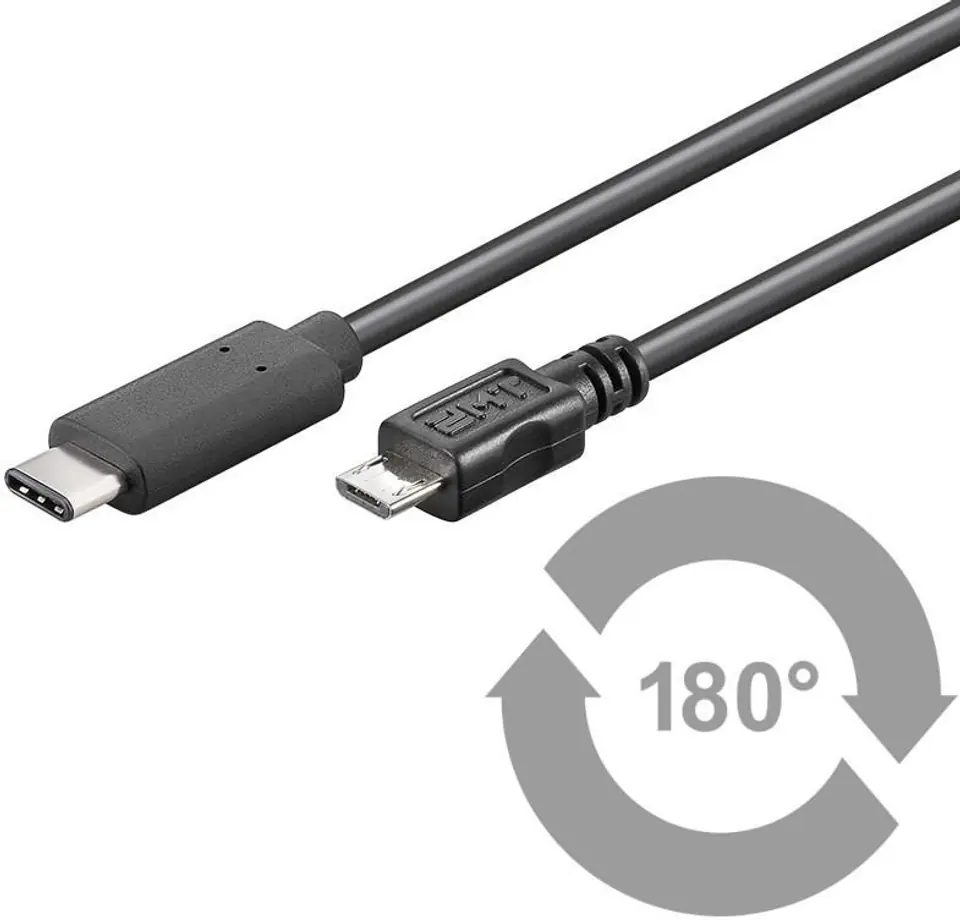 MicroConnect USB-C to USB2.0 Micro B 1M Black, for synching and charging, Speed Rate at 0,48 Gbs. 2,5W