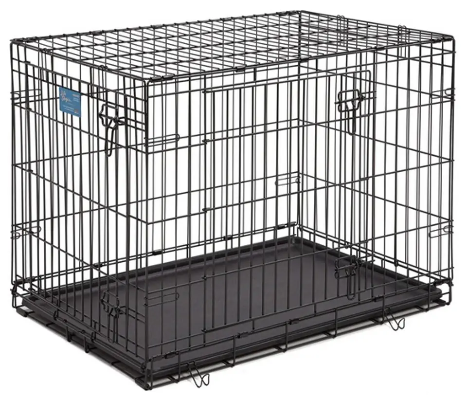 Dwudrzwiowa klatka dla psaWymiary: 93 x 59 x 64 cm (długość x szerokość x wysokość)Klatka przeznaczona jest dla psów ras średnichSzukasz mocnej klatki dla swojego psa, której składanie i rozkładanie zajmuje tylko kilka chwil? Właśnie taka jest metalowa klatka Life Stages 1636DD od amerykańskiego producenta MidWest.Klatka Life Stages 1636DD w kolorze satynowej czerni sprawdzi się w każdych warunkach – jest stworzona z mocnych metalowych drutów i wytrzymałej, wysuwanej podłogi z tworzywa sztucznego, którą łatwo utrzymasz w czystości.Dwoje drzwi – w krótszym i dłuższym boku gwarantują swobodny dostęp do psa, a średniej wielkości oczka sprawiają, że Twój pies nie będzie czuł się odseparowany podczas pobytu w klatce. Bezpieczeństwo Twojego pupila to po dwa solidne zamki z zabezpieczeniem w drzwiach, zapobiegające niepożądanemu otwarciu klatki, a także zaokrąglone narożniki, dzięki którym Twojemu psu nie stanie się żadna krzywda.Klatkę Life Stages 1636DD złożysz i rozłożysz zaledwie w kilka chwil – bez użycia jakichkolwiek narzędzi. Dołączone do zestawu dwa doczepiane uchwyty sprawiają, że przenoszenie klatki jest szybkie, proste i wygodne.Metalową klatkę Life Stages 1636DD możesz postawić w dowolnym miejscu – dzięki gumowym nóżkom będzie stać stabilnie i nie porysuje nawet najbardziej delikatnej powierzchni.Model Life Stages 1636DD jest wyposażony w metalową przegrodę, dzięki której dopasujesz wielkość klatki do rozmiaru swojego czworonożnego przyjaciela. To rozwiązanie pozwala na zakup tylko jednej klatki, która będzie „rosła” wraz z Twoim psem.Life Stages® - Double Door - 1600DD Series