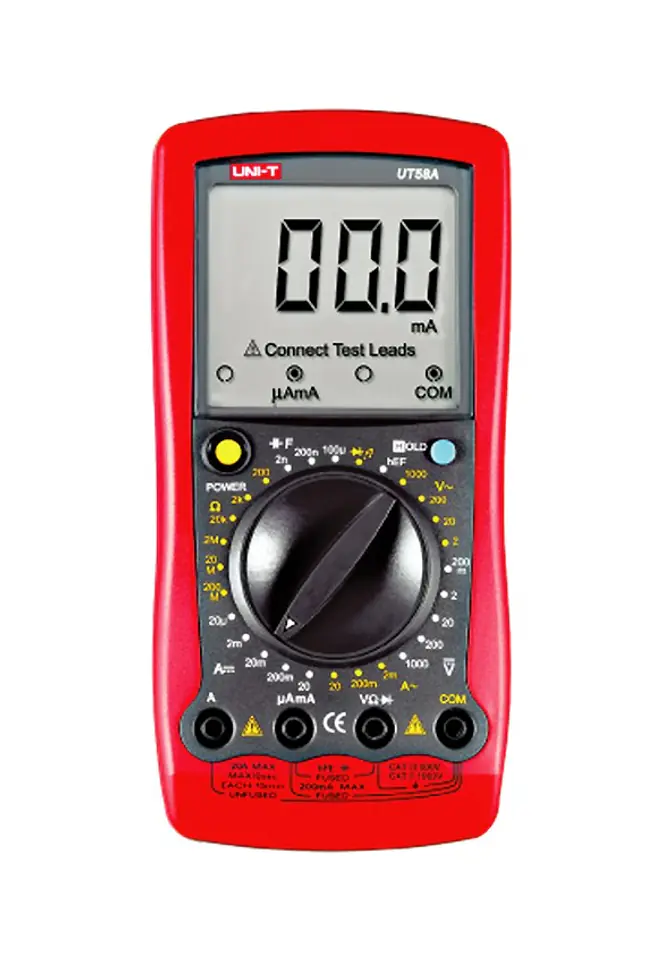 - Prąd stały DC – 20 µA / 2 mA / 20 mA / 200 mA / 20 A; ±(0,08%+1)