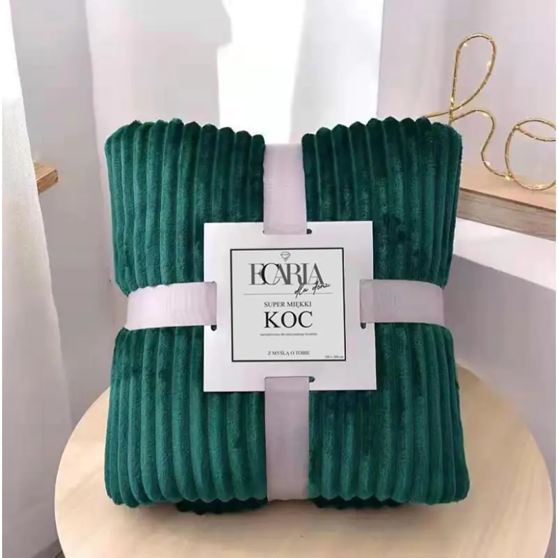 Mięciutki koc prążkowany butelkowa zieleń 180x200 cm KOC12ZIE