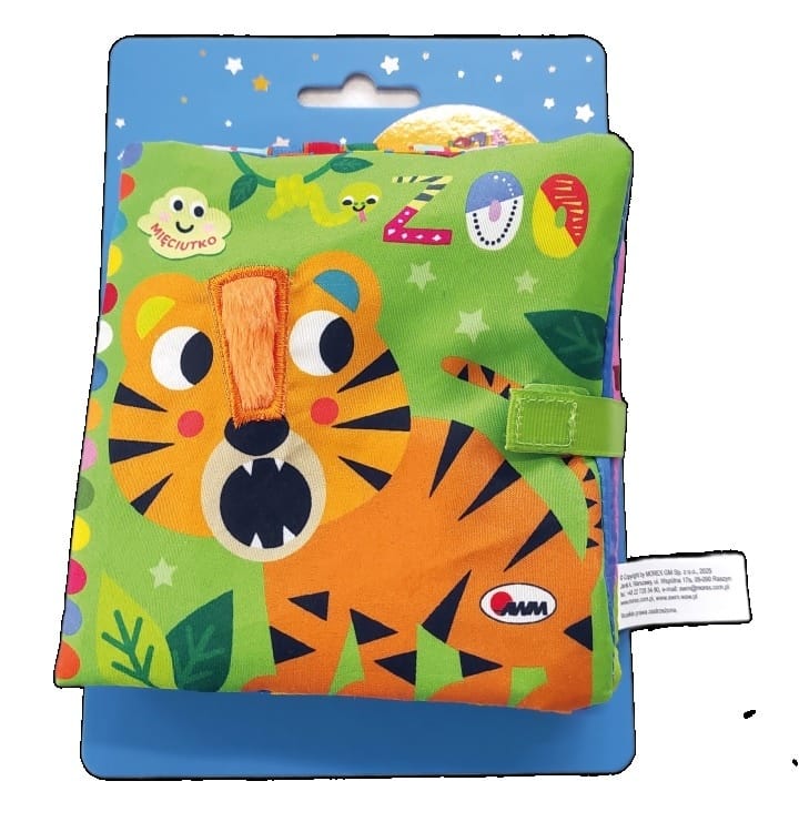 Urocza książeczka dla ciekawych świata maluchów, wykonana z miękkiego materiału z szeleszczącą okładką. Dzięki sympatycznym ilustracjom i prostym tekstom dziecko poznaje świat dzikich zwierząt. Miękkie strony idealnie nadają się dla małych rączek, a książka jest przymocowana do tekturki, co ułatwia zabawę i czytanie.