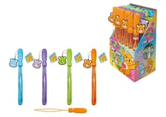 TM Miecz do baniek mydlanych, 150 ml, 4 rodzaje\nMiecz do baniek mydlanych z licencją Care Bears, w zestawie urocza zawieszka z Care Bears, 4 kolory z różnymi misiami Care Bears, 36,5 cm, 150 ml, 24 sztuki w displayu, 3l+