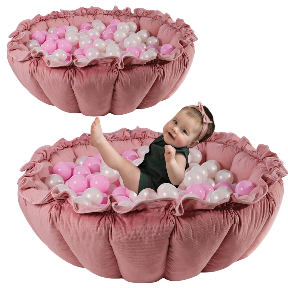 Zaledwie w kilka chwil, mata przemienia się w uroczy basen z piłkami, mający średnicę 95 cm. Jest on otoczony delikatną falbanką, dodającą całości nutę czarodziejskiego klimatu. Do zestawu dołączamy 100 piłeczek, które możesz wybrać według własnych preferencji, tworząc spersonalizowaną kolorystykę zabawki. Piłeczki te nie tylko urozmaicają zabawę, ale też pełnią ważną rolę w wspieraniu rozwoju motorycznego i sensorycznego Twojego dziecka, stymulując aktywność ruchową oraz zmysł wzroku i dotyku.