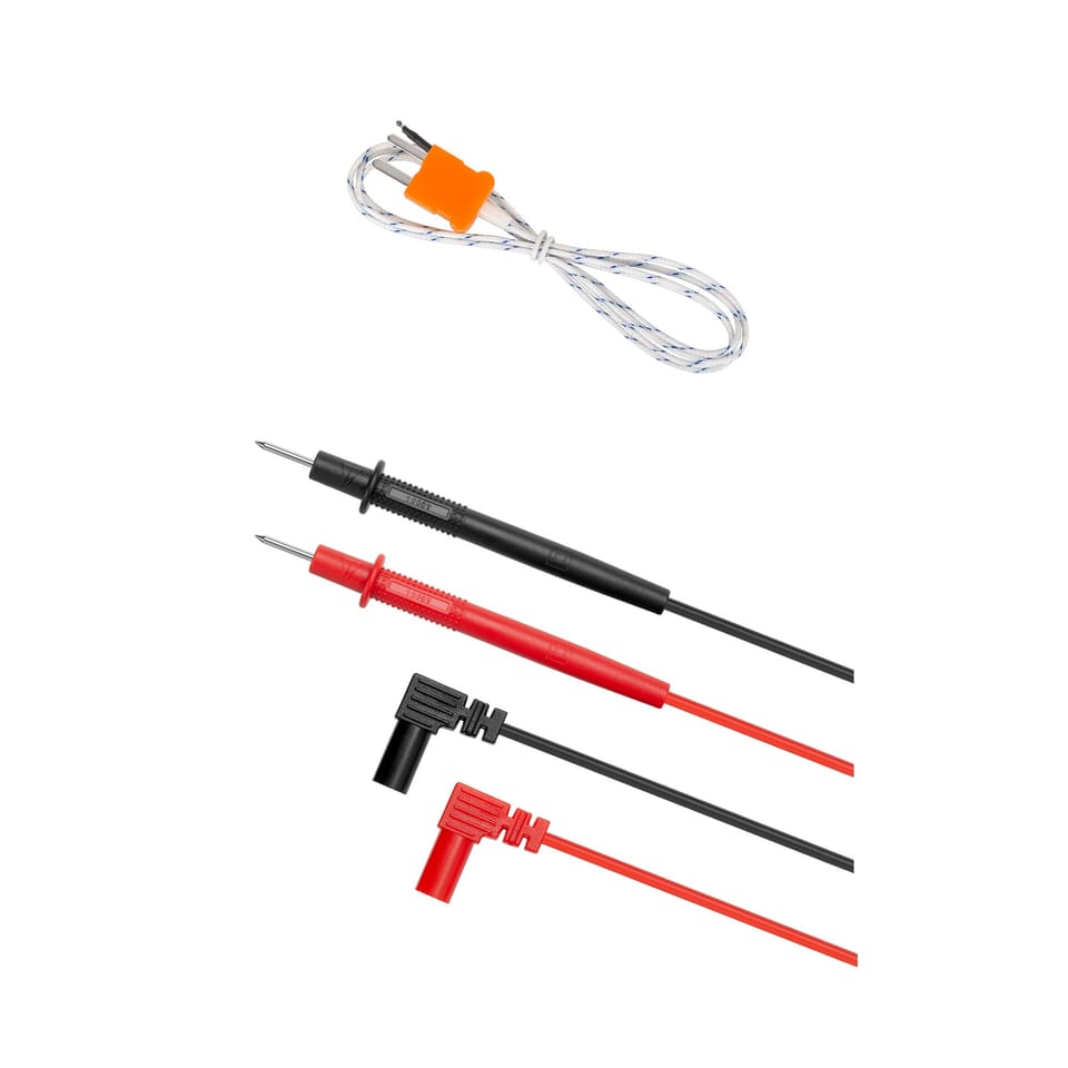 W zestawie: miernik, przewody pomiarowe, termopara typu K, instrukcja