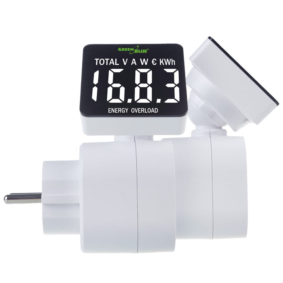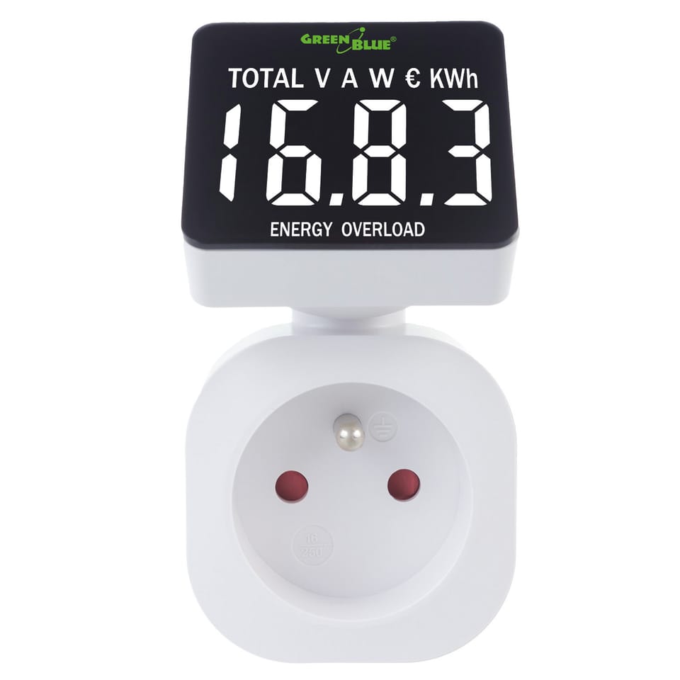 Specyfikacja- Producent: GreenBlue- Model: GB620 E- Maks. obciążenie: 3680 W- Zasilanie: 220-240 V / 50-60Hz, 16 A- Zakres pomiaru napięcia: 200 V – 276 V (dokładność +/- 2%)- Zakres pomiaru prądu 0,00 - 20 A (dokładność +/- 2%)- Zakres wyświetlania mocy: 0,3 - 3680 W (dokładność +/- 2%)- Zakres zużycia: 0 - 9999 kWh- Wymiary miernika: 5,5 x 5,5 cm- Wymiary wyświetlacza: 5 x 5 cm- Stopień ochrony: IP20- Zakres temperatury pracy: od -10° do +40°C- Zakres wilgotności pracy: 30 - 80%- Zabezpieczenie przed dziećmi- Kolor: biały