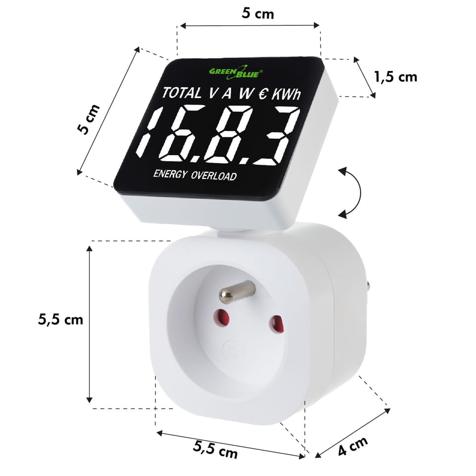 Miernik wyposażony jest w 2 wygodne przyciski umieszczone na górze obudowy ekranu, które ułatwiają obsługę urządzenia. Dzięki maksymalnej mocy 3680W, jest w stanie obsłużyć nawet najbardziej wymagające urządzenia elektryczne.Czytelny wyświetlacz umożliwia łatwe odczytywanie danych, takich jak ilość zużytej energii oraz jej koszty. Dzięki temu możesz dokładnie monitorować i kontrolować wydatki na energię elektryczną.Dodatkowo ekran można obracać, co pozwala na dostosowanie kąta widzenia zapewniającego najlepszą widoczność.