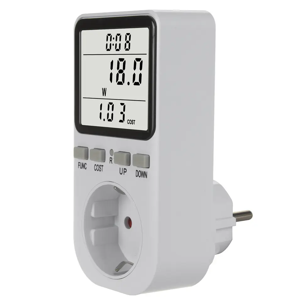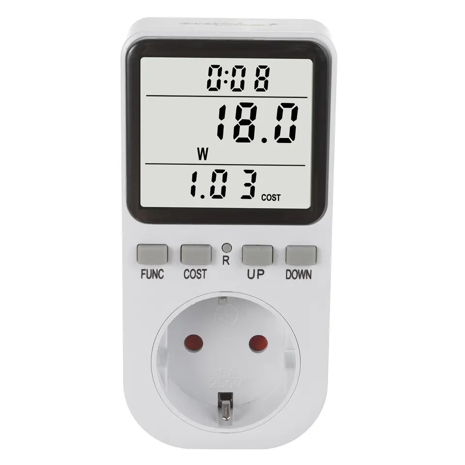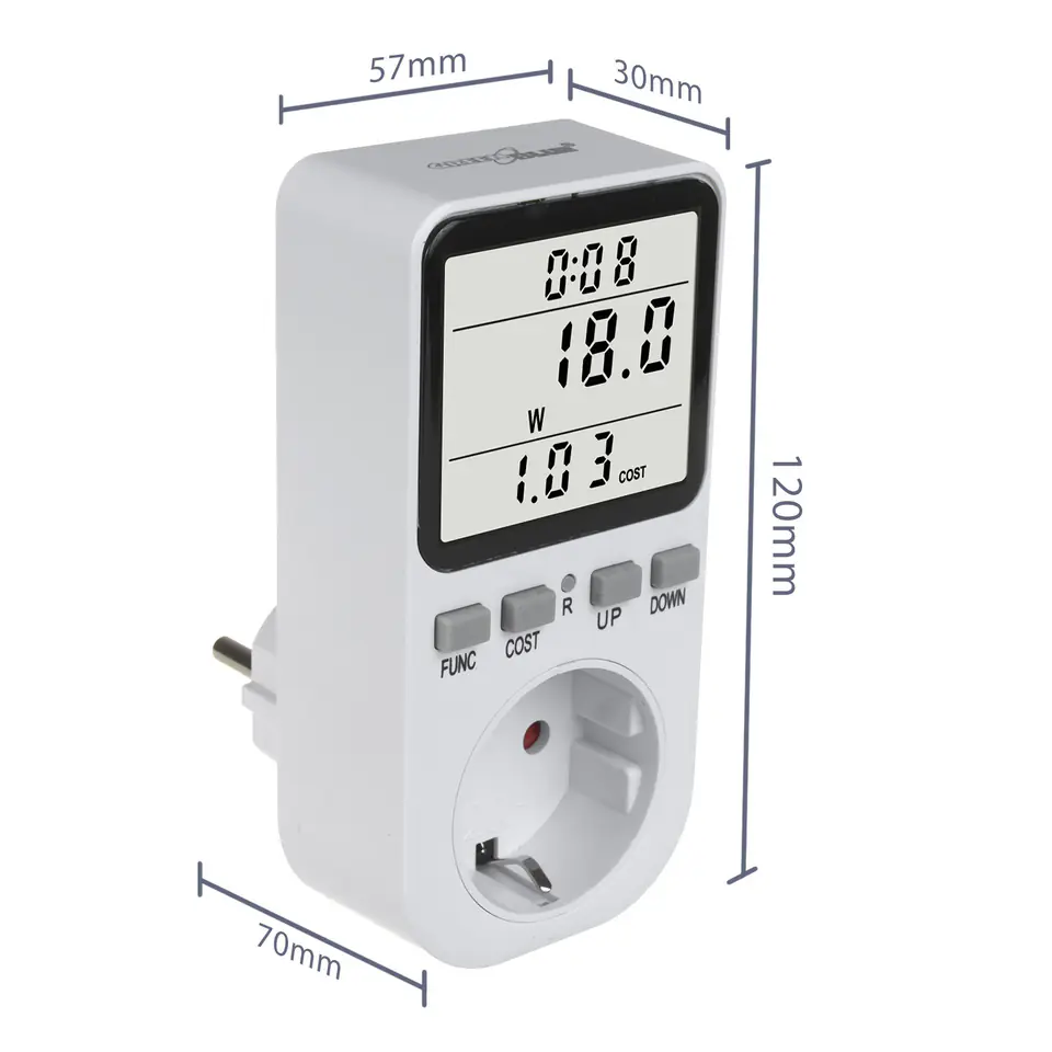 Miernik poboru energii elektrycznej pozwala sprawdzić, które urządzenia działają nieekonomicznie ? dzięki temu można wprowadzić plan oszczędzania i zredukować wydatki na prąd. Sprawdź ile energii zużywa Twój komputer, telewizor, pralka... Mniejsze zużycie prądu to mniejsza emisja CO2 do środowiska.Urządzenie mierzy pobieraną energię (oraz oblicza jej koszt) urządzeń domowych, dzięki czemu można zobaczyć, które z nich pobierają najwięcej mocy i w ten sposób ograniczyć ich użytkowanie. Tym samym ograniczając rachunki za energię elektryczną.