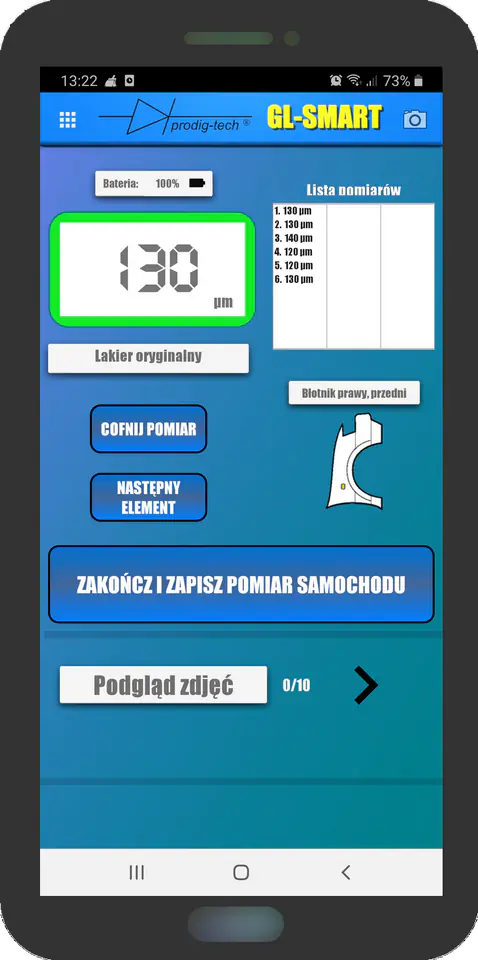 - pomiar rozszerzony z zapisem pomiarów z podziałem na rodzaj blachy (stalowa, aluminiowa, stalowa ocynkowana);