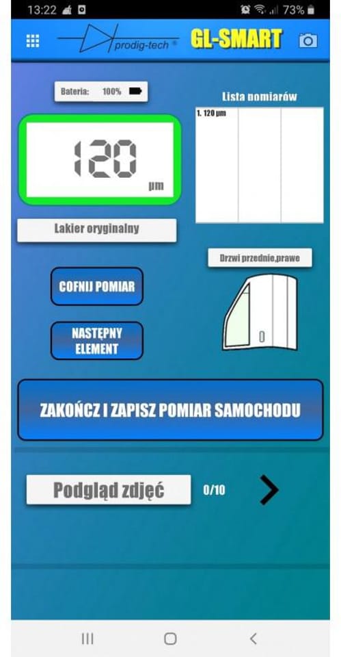 Mierniki grubości lakieru serii SMART umożliwiają połączenie z telefonem za pomocą interfejsu BluetoothAplikacja GL-SMART umożliwia szereg dodatkowych funkcji, które nie są dostępne dla standardowych mierników grubości lakieru takich jak edycja raportów, eksport raportów do pliku PDF, pomiary poszczególnych elementów i wiele innych