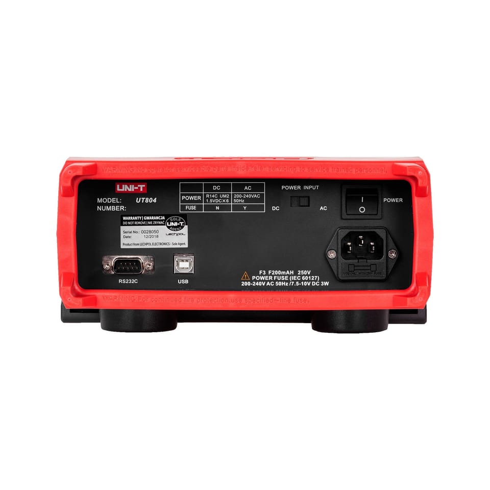 Akcesoria: Przewody pomiarowe, sonda pomiaru temperatury, krokodylki, krótkie przewody pomiarowe z krokodylkami, gniazdo do pomiaru kondensatorów, przewód USB, przewód RS232C, przewód sieciowy