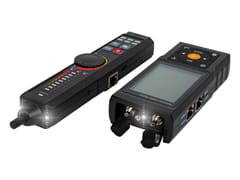 - Test kabla UTP: Test sekwencji, typu oraz zestawu zdalnego kabla UTP, szybkie wykrywanie punktów uszkodzeń na początku, w środku i na końcu złącza RJ45.