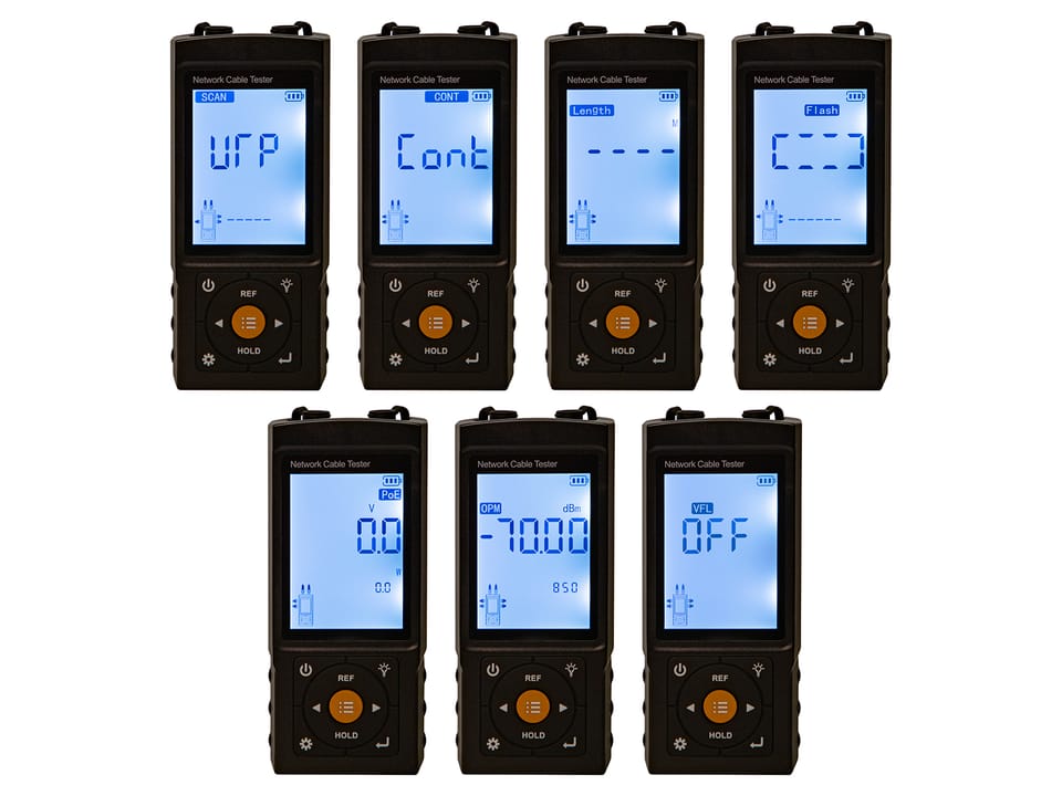 - Obsługiwane kable: Kabel BNC, sieciowy, telefoniczny, RW, kable windy, CAT5 / CAT6.
