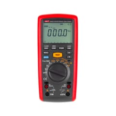 UT505A jest kieszonkowym cyfrowym miernikiem rezystancji izolacji z funkcją pomiaru napięcia AC TRUE RMS/DC 50V, 100V, 250V, 500V, 1000V oraz małych rezystancji. Urządzenie charakteryzuje wysoka dokładność i stabilność. Dzięki poręcznym wymiarom, zasilaniu na baterie oraz intuicyjnej obsłudze, przyrząd ten idealnie sprawdzi się w każdych warunkach.